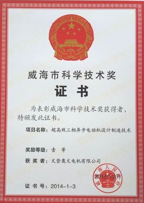月,经过威海市科技局组织专家严格的评审,多多28官网-追求健康,你我一起成长-pgdd 有限公司超高效三相异步电动机制造技术获得威海市科技进