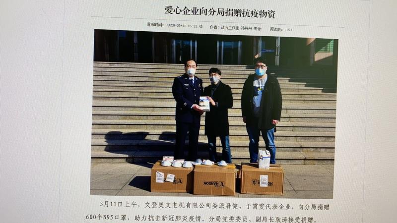 3月11日上午,多多28官网-追求健康,你我一起成长-pgdd 有限公司委派孙健和于霄雯代表企业,向文登区公安局捐赠一批N95口罩(600个)。文登区公安局党委委员、副局长耿涛接受捐赠。 该批口罩是奥文电机通过客户在国外筹集的,企业收到口罩后,觉得这种防护性能较好的口罩应该用在抗疫一线更能发挥作用。因此,尽管企业也面临口罩短缺的问题,公司还是毅然决定向区公安局捐赠这批N95口罩。希望广大战斗在抗疫一线的公安干警,在保护好群众健康安全的同时,也做好自身的健康防护。
